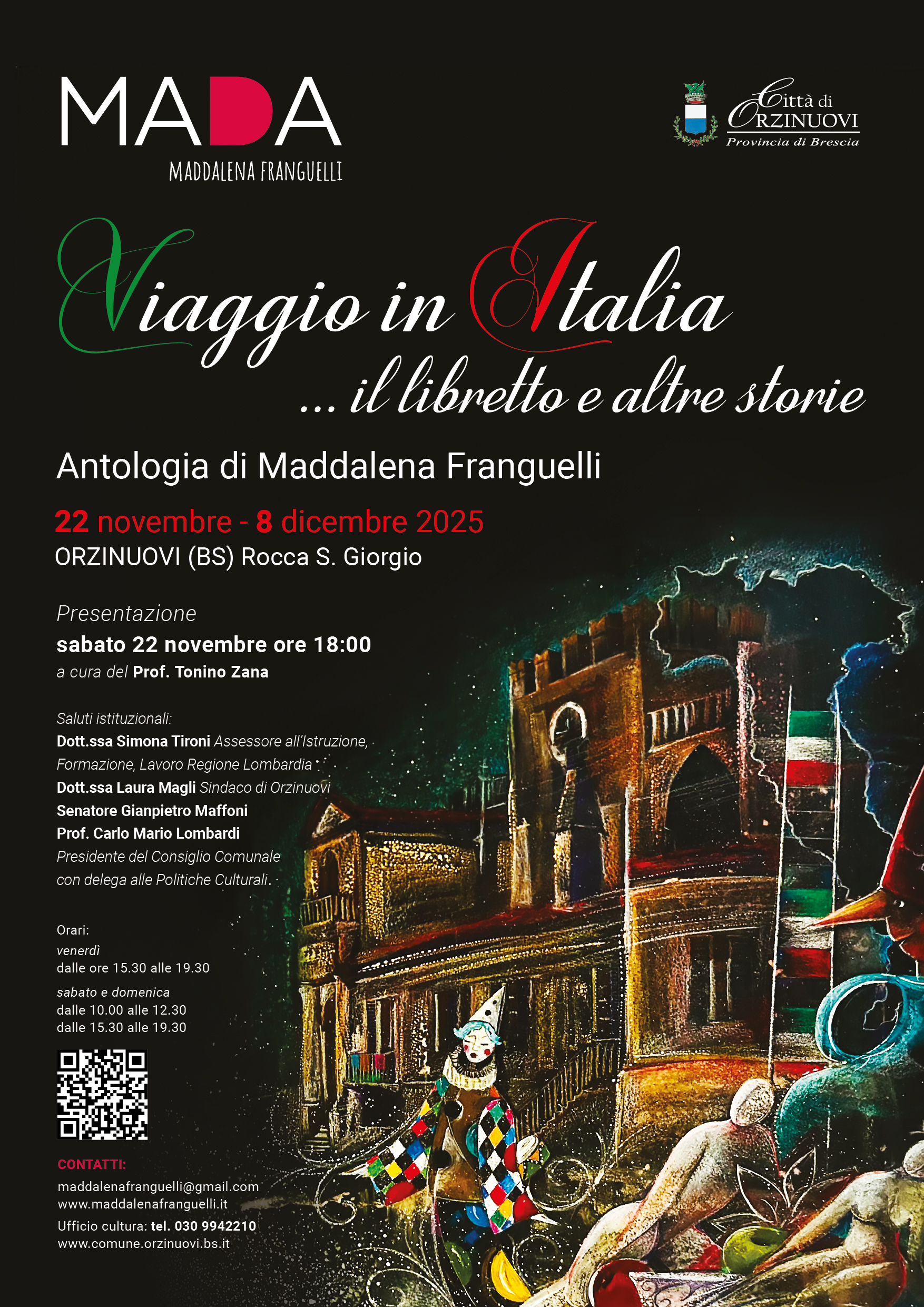 Dal 22 novembre all’8 dicembre 2025 la Rocca di Orzinuovi ospiterà una mostra personale di Maddalena Franguelli, in arte “MADA”.