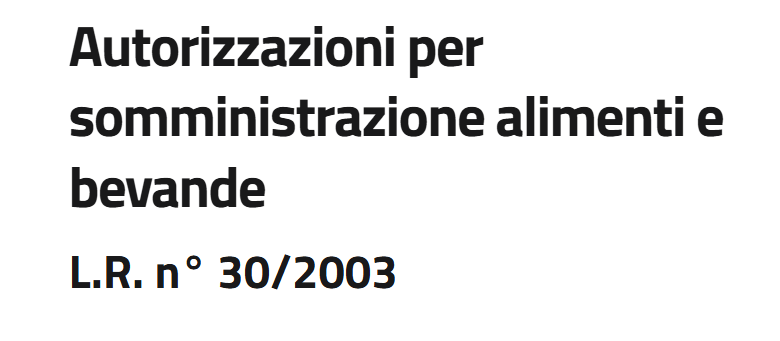 Somministrazione al pubblico di alimenti e bevande ( L.R.30/03)
