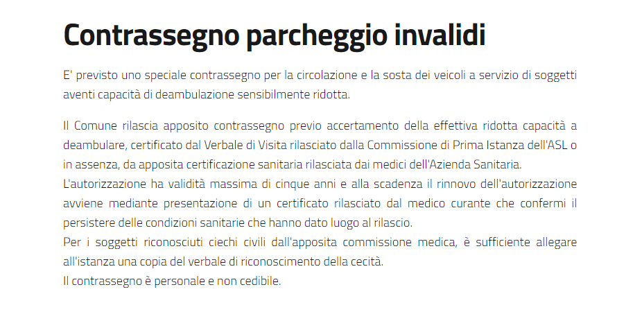 Il Comune rilascia apposito contrassegno previo accertamento della effettiva ridotta capacità a deambulare, certificato dal Verbale di Visita rilasciato dalla Commissione di Prima Istanza dell'ASL o in assenza, da apposita certificazione sanitaria rilasciata dai medici dell'Azienda Sanitaria.