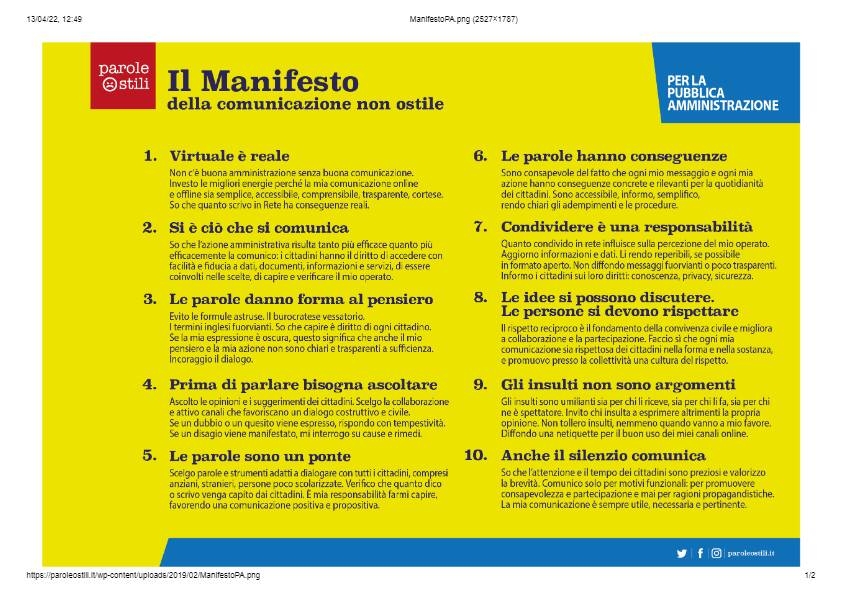 Il progetto costituisce un'occasione per ridefinire lo stile con cui si sta sul web e per responsabilizzare gli utenti a scegliere con cura le parole, partendo dal presupposto che in particolare i social network, pur essendo luoghi virtuali, non sono un porto franco, ma il centro in cui si incontrano persone reali, nell'ottica della prevenzione e contrasto contro i fenomeni del bullismo e cyberbullismo.