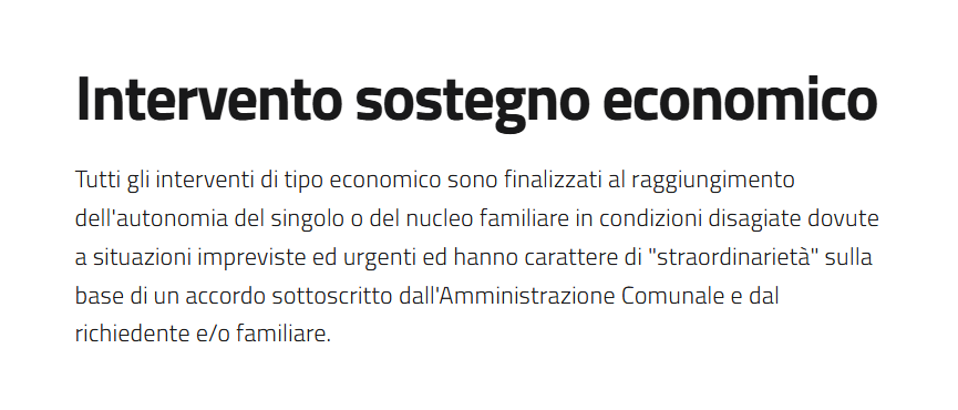 Servizio di sostegno economico rivolto a persone e famiglie in difficoltà, con contributi e interventi personalizzati