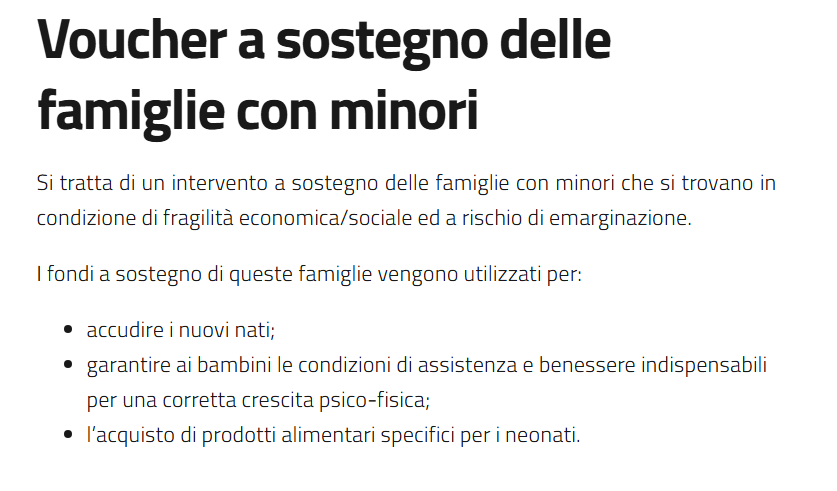 Servizio per il sostegno delle famiglie con minori, per favorire conciliazione famiglia-lavoro e accesso a servizi educativi